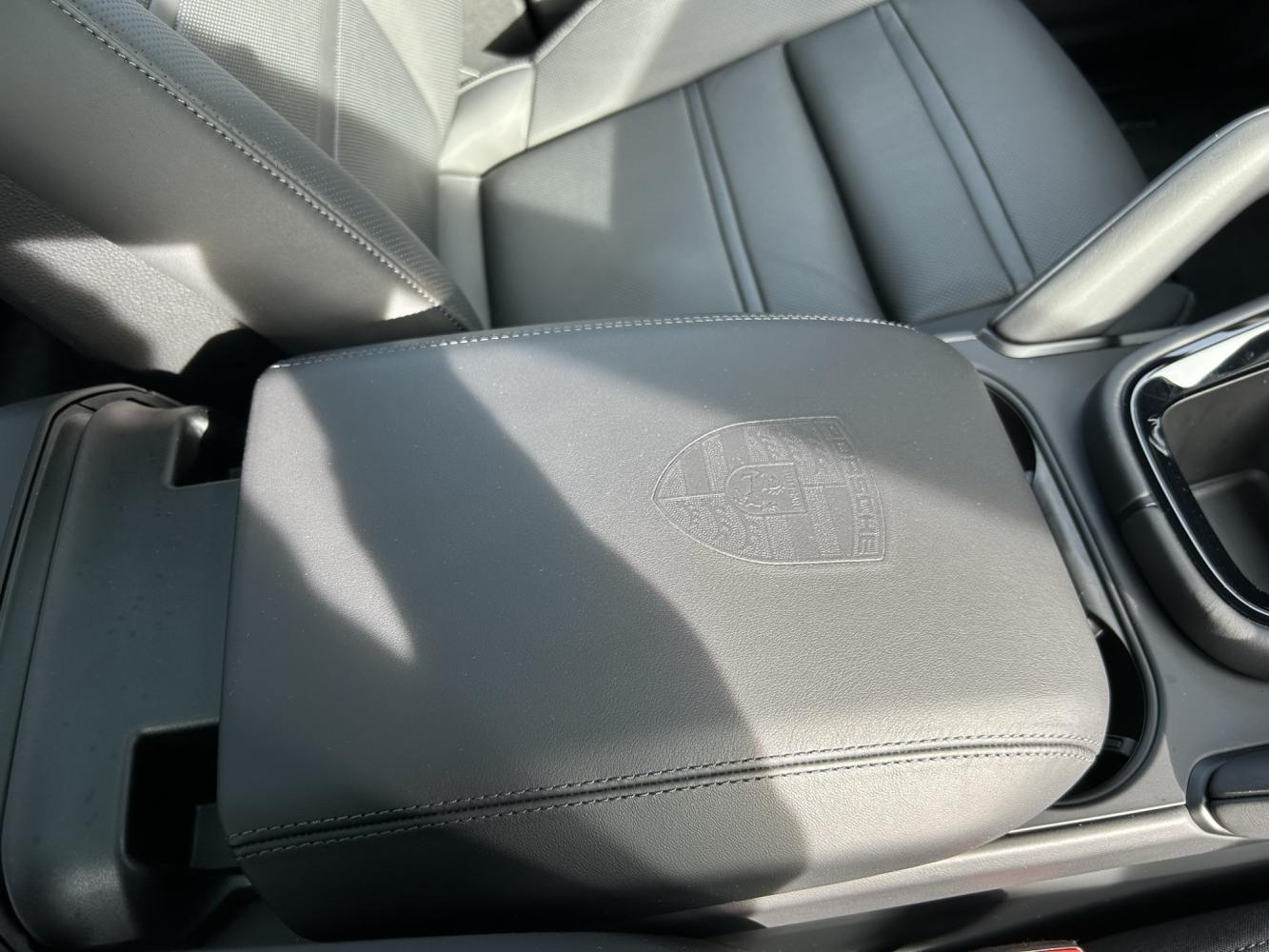 Loketní opěrka přední středové konzoly s erbem Porsche